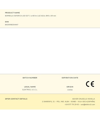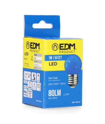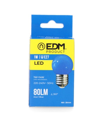 Bombilla esferica led e27 1w 80lm luz azul ø45x69mm 25000h ac 220-240v clase energetica: f angulo de apertura: 220° edm