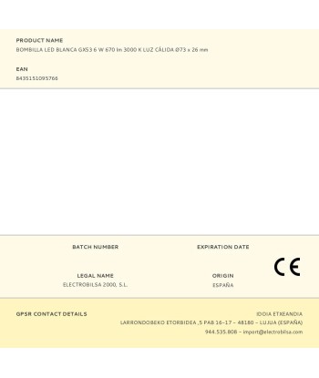 Bombilla led blanca gx53, 6 w, 670 lm, 3000 k, ø73 x 26 mm, 220-240 v ~ 50 hz, luz cálida, perfecta para iluminación decorativa, ahorra hasta el 80% de energía, dura hasta 10 veces más que una bombilla tradicional, material abs, no regulable, flujo luminoso 360°, ángulo de apertura 100°, clase energética e