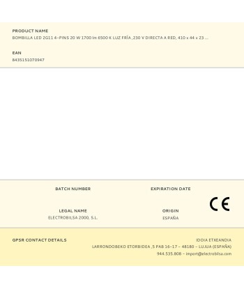 Bombilla led 2g11 4-pins 20 w 1700 lm 6500 k luz fría, 220 - 230 v 50-60 hz, conectar directamente a red, vida útil 25000 h, no regulable, flujo luminoso 360°, ángulo de apertura 180°, clase energética f, equivalencia 110w 410 x 44 x 23 mm
