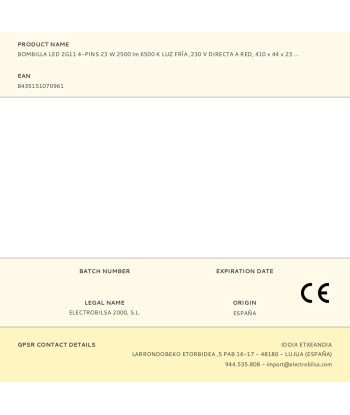 Bombilla led 2g11 4-pins, 23 w 2500 lm 6500 k luz fría, 220-230 v 50-60 hz, conectar directamente a red, vida útil 25000 h, no regulable, flujo luminoso 360°, ángulo de apertura 180°, clase energética f, equivalencia 140w 535 x 23,5 x 43,3 mm