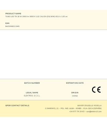 Tubo led t8 18w 1900lm 3000k luz calida (eq.36w) medidas: ø2,6x120cm 25000h ac 220-240v clase energetica: f angulo de apertura: 360° (cebador incluido. conexion directa a 220v) edm