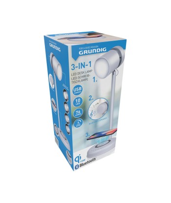 Lámpara de escritorio led 3-en-1 grundig. lampara + altavoz + cargador inalámbrico.