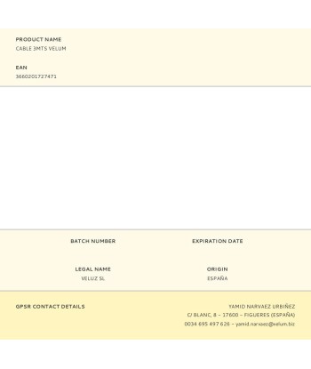 Cable 3mts velum