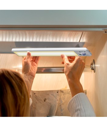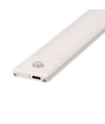Regleta led recargable con sensor, 1,5 w, 3cct (3000k, 4000k, 6500k), 120 lm, 71 leds, flujo luminoso: 360°, ángulo de apertura: 180°, 1500 mah, carga con cable usb c 5v dc, tiempo de carga completa: 3 h, autonomía: 10 h, ip20, la intensidad de la luz es totalmente ajustable manteniendo pulsado el botón táctil, la temperatura de color es regulable con botón táctil, selector dip, sensor pir, vida estimada: 25000 h, incluye placa metálica adhesiva magnética no necesita instalación medida: 14 x 40 x 306 mm