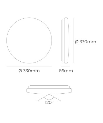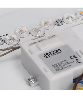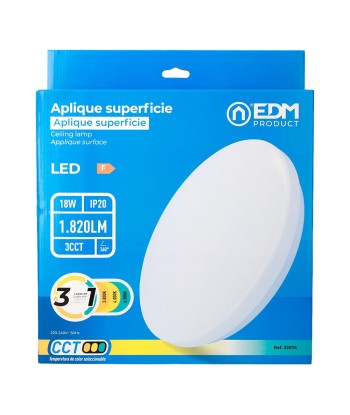 Aplique led circular de superficie 18 w 3cct (3000k, 4000k, 6500k) 1820 lm, 36 leds, flujo luminoso: 360°, ángulo de apertura: 120°, 220-240 v ~ 50 hz, ip20. vida estimada: 25.000 h, clase energética: f. medidas: ø33 x 6,6 cm, incluye kit de montaje